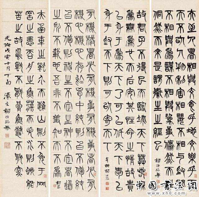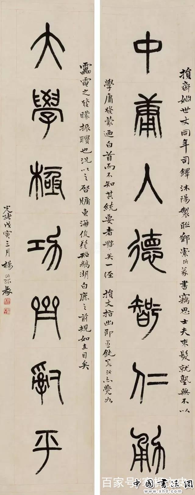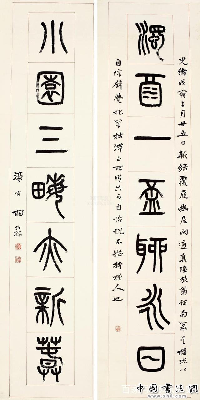 杨沂孙(1813-1881),字子舆、子与,号泳春、濠叟,江苏常熟人,清代著名书法家。其工篆书,融会大、小篆,篆法精纯,学力深厚,主要代表作有《赠少卿尊兄七言联》、《文字说解问伪》、《完白山人传》、《石鼓赞》等。